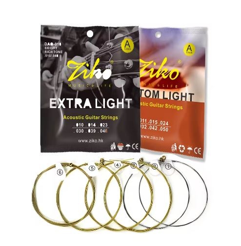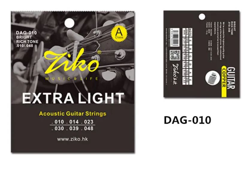 Bộ dây đàn guitar acoustic Ziko DAG Series là lựa chọn kinh tế cho người mới học đàn và người chơi phổ thông. Dây bọc đồng cho âm thanh vang, sạch, bass sâu và độ căng nhẹ giúp bấm êm tay, hạn chế đau ngón. Có 2 phiên bản: DAG-010 (Extra Light) và DAG-011 (Light).