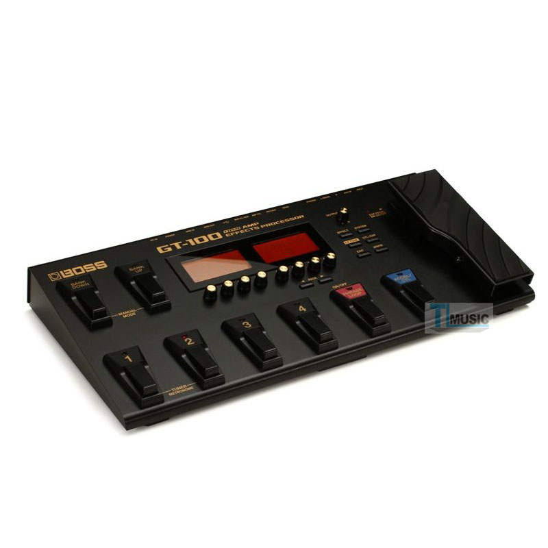 Boss GT-100 là sản phẩm Multi Effects Pedal (bàn đạp đa hiệu ứng) chuyên dụng cho guitar điện. Sản phẩm sử dụng công nghệ COSM tiên tiến, cho phép người sử dụng tái tạo âm thanh của các thiết bị preamp, cabinet, effect của nhiều thương hiệu nổi tiếng trên thế giới như Marshall, Fender, VOX, MesaBoogie, Peavey… trên 1 bàn đạp đa hiệu ứng mang tên Boss GT100.