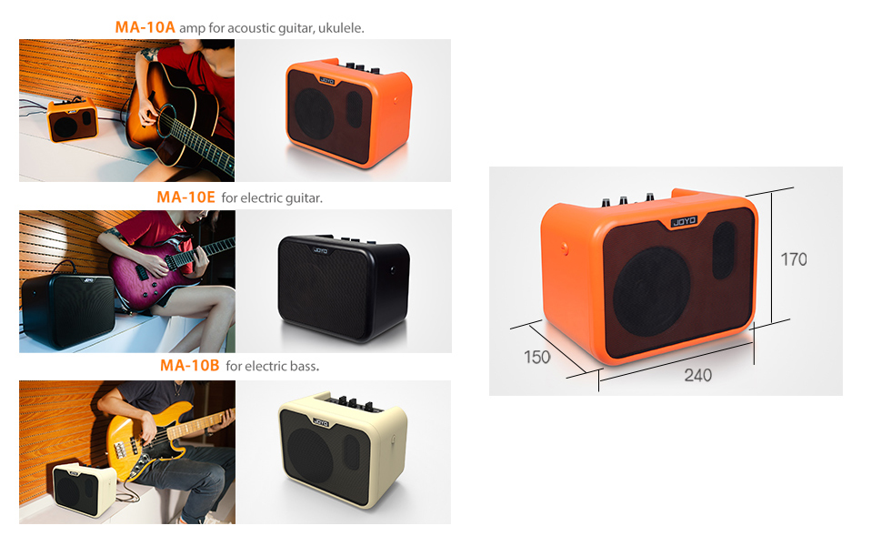 JOYO MA-10A hoạt động hoàn hảo với Guitar Acoustic. Ngoại hình bắt mắt với Logo phát sáng khi hoạt động.