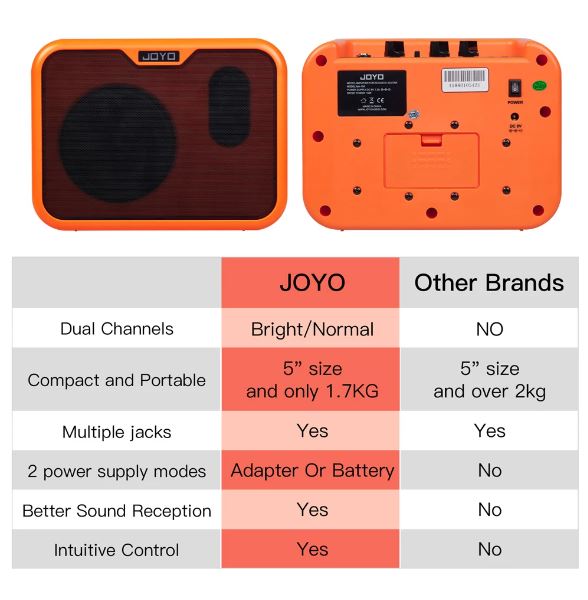 Amply JOYO MA-10A sở hữu thiết kế compact, trọng lượng chỉ ~1.3kg, dễ dàng mang theo mọi nơi. Phù hợp cho: