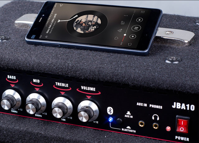 Nổi bật trên JBA-10 là một số đầu vào và đầu ra hữu ích - làm cho đây trở thành bộ khuếch đại lý tưởng. Ở mặt trước, có AUX IN vs BLUETOOTH cho phép bạn kết nối với bất kỳ điện thoại, iPod hoặc nguồn nhạc bên ngoài nào, vì vậy bạn có thể chơi cùng với các bài hát yêu thích hoặc thậm chí là các bản nhạc đệm của riêng mình.
