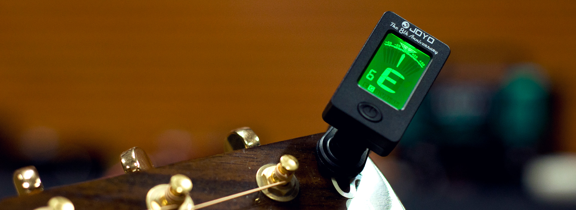 - Máy lên dây (tuner) điện tử có màn hình hiển thị trợ giúp cho người chơi guitar lên dây đàn nhanh chóng và chính xác.